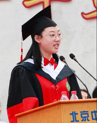 中藥學院2012級博士研究生付京代表2017屆全體研究生畢業生發言。她說,走在鳳凰花開的路口,心中的激動和感慨無法言表。帶著漸行漸遠的記憶,拎著裝滿知識的行囊,我們即將離開美麗的校園,走向社會,奔向明天。我們將恪守初心,秉承“大醫精誠”之志,知行合一,將祖國醫學發揚光大,做志存高遠、銳意創新的北中醫人,樂觀堅韌、敢于創業的北中醫人,心懷感恩、樂于回報的北中醫人。