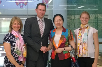 7月2日,加拿大昆特侖理工大學(KWANTLEN POLYTECHNIC UNIVERSITY,KPU)副校長Stuart McIlmoyle先生、健康科學系主任Dr. Tru Freeman女士以及國合處主管Anita Hamm女士訪問我校,就兩校在加拿大哥倫比亞省建立中醫學院、開展合作辦學展開了進一步磋商。