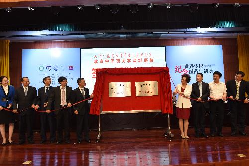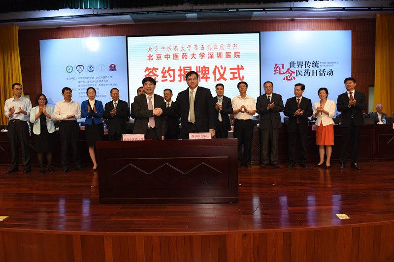 國家中醫藥管理局副局長馬建中、深圳市政府副市長吳以環、中央人民政府駐香港特別行政區聯絡辦公室副主任張強、中華中醫藥學會副會長曹正逵、國家中醫藥管理局中國中醫藥科技開發交流中心主任黃暉、廣東省中醫藥管理局局長徐慶鋒、廣東省中醫藥學會副會長金世明、深圳市衛計委主任羅樂宣、深圳市人民政府外事辦公室主任姜力琨、中共龍崗區委書記高自民、龍崗區人民政府區長戴斌、龍崗區政協主席吳書坤、深圳市中醫藥學會會長李順民、香港注冊中醫學會會長陳永光、香港中醫藥管理委員會中醫組主席黃傑、澳門中醫藥學會會長石崇榮、臺灣財團法人張仲景文教基金會執行長張閎運以及國醫大師張大寧、唐祖宣、禤國維、南京中醫藥大學教授黃煌、美國密蘇里大學傳統醫學院教授羅曼德維根等出席了簽約及揭牌儀式。