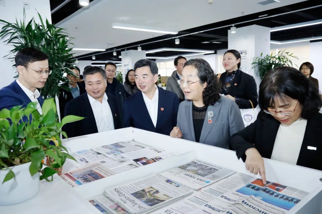 會前,王瑤琪書記、唐志書校長一行共同參觀了中國日報社建設成果及采編大廳。