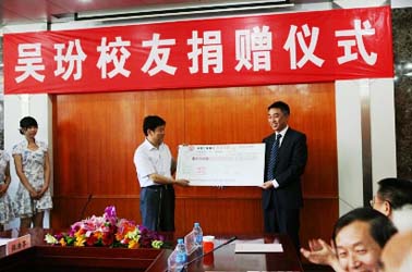 吳玢先生1988年畢業(yè)于我校中藥學(xué)專業(yè),師從中國中醫(yī)科學(xué)院王孝濤先生,現(xiàn)任北京康仁堂藥業(yè)有限公司總經(jīng)理、世界中醫(yī)藥學(xué)會聯(lián)合會中藥專業(yè)委員會理事、中國中藥協(xié)會中藥飲片專業(yè)委員會理事。20年來從事中藥現(xiàn)代化研究,在中藥配方顆粒行業(yè)最先提出“全成分”中藥配方顆粒理論,突破中藥現(xiàn)代化“唯成分論”觀點(diǎn),解決了配方顆粒單共煎問題;創(chuàng)新應(yīng)用紅外指紋圖譜技術(shù)建立專屬于中藥的全面質(zhì)量控制體系,先后獲得國家中醫(yī)藥管理局、國家科技部、國家發(fā)改委、國家藥監(jiān)局等部門中藥現(xiàn)代化及863專項(xiàng)支持,申報發(fā)明專利36項(xiàng)。吳玢先生創(chuàng)立北京康仁堂藥業(yè)有限公司,非常希望竭盡全力回報母校,為培養(yǎng)出更多的優(yōu)秀中醫(yī)藥人才貢獻(xiàn)力量。康仁堂除捐助1000萬元外,還將協(xié)助學(xué)校建立并不斷完善校友聯(lián)絡(luò)組織,將世界各地的校友聯(lián)絡(luò)起來,以期為母校發(fā)展貢獻(xiàn)更大的力量。