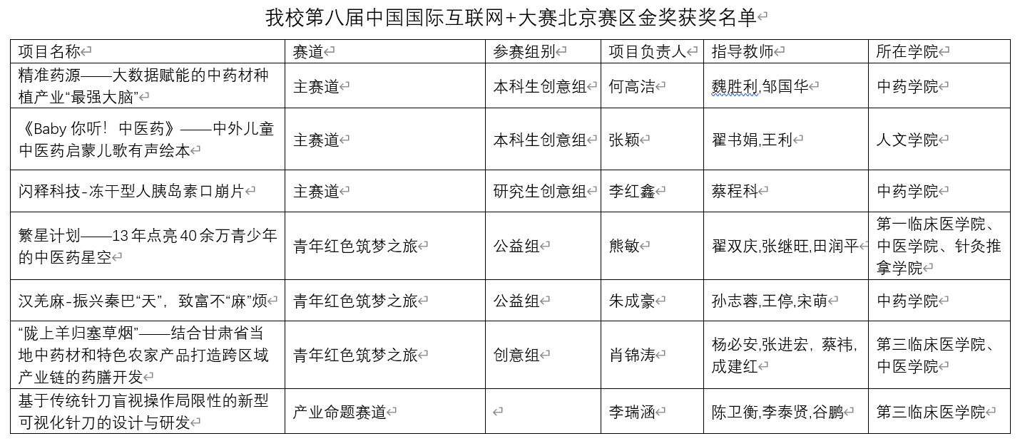 7月23日、24日,第八屆中國國際“互聯(lián)網(wǎng)+”大學生創(chuàng)新創(chuàng)業(yè)大賽北京賽區(qū)復賽決賽順利舉辦。我校收獲了自參加“互聯(lián)網(wǎng)+”大賽的以來的最佳戰(zhàn)績,并獲得多項重大突破。一是一等獎數(shù)量大幅提升。7支團隊榮獲北京市一等獎,數(shù)量超過我校歷屆參賽一等獎總和。一、二、三等獎共計68項,同創(chuàng)歷年最好成績。二是一等獎賽道全面覆蓋。在高教主賽道、青年紅色筑夢之旅賽道、產(chǎn)業(yè)命題賽道都有團隊獲得一等獎。三是最好名次刷新記錄。青年紅色筑夢之旅賽道《繁星計劃——13年點亮40余萬青少年的中醫(yī)藥星空》項目位列公益組北京市第二名,取得我校在“互聯(lián)網(wǎng)+”大賽中團隊最好名次。四是連續(xù)四次榮獲北京賽區(qū)“優(yōu)秀組織校”稱號。