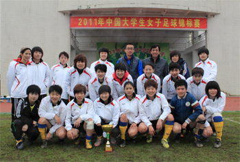 在近日舉行的2011年中國大學生女子足球錦標賽中,我校女子足球隊以六戰全勝的戰績勇奪甲組冠軍。此次比賽由中國大學生體育協會、中國足協主辦,共有來自全國各地的14所高校分別參加了甲、乙兩個組別的比賽,是全國女足聯賽之后的第二大女足賽事。
