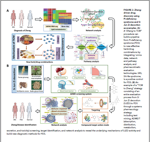 A lack of research on Zheng has left us with little understanding of its underlying biology or the relationships between different Zhengs, diseases, and drugs. Moreover,there have been attempts to integrate Zheng differentiation with modern biomedical diagnostic methods, though these efforts have not achieved the desired results (2). Many well-known herbal recipes, such as Liu Wei Di Huang Wan and Jin Kui Shen Qi Wan, have long been used for the clinical treatment of Zheng disorders; however, Zheng-guided treatments are still scarce due to the lack of evidence-based interpretations of syndromes and treatment efficacies. Thus,investigating the biological basis of Zhengs from a molecular to systems level is important for advancing the identification and treatment of these syndromes, and for providing more objective and quantitative diagnostic criteria.