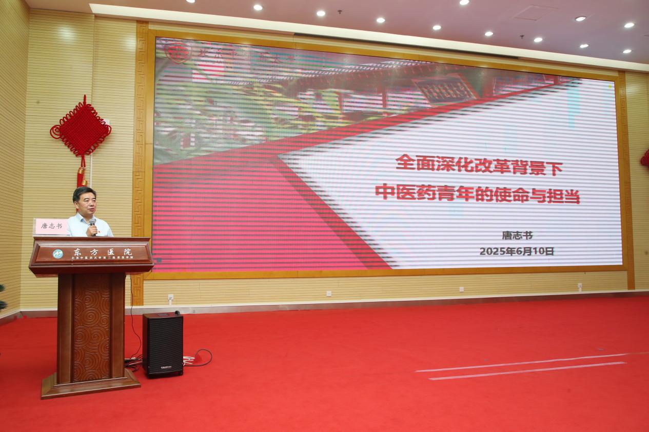 我校校長唐志書講黨課,寄語青年學子扛起中醫(yī)藥傳承創(chuàng)新時代使命6月10日上午,我校校長唐志書以“全面深化改革背景下中醫(yī)藥青年的使命與擔當”為題,為北京中醫(yī)藥大學第二臨床醫(yī)學院(東方醫(yī)院)學生黨支部帶來一堂立意深遠、催人奮進的專題黨課。東方醫(yī)院黨委書記韓振蘊,黨委副書記、院長商洪才及黨政領導班子成員,教育處教師、四個學生黨支部的黨員參加黨課學習。本次黨課由醫(yī)院黨委書記韓振蘊主持。112025-06