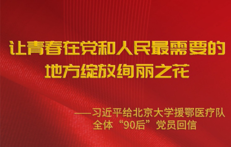 學回信精神 擔復興大任3月15日,習近平總書記給北京大學援鄂醫療隊“90后”黨員回信,向他們和奮斗在疫情防控各條戰線上的廣大青年致以誠摯的問候。習近平總書記指出,青年一代有理想、有本領、有擔當,國家就有前途,民族就有希望,希望廣大青年努力在為人民服務中茁壯成長、在艱苦奮斗中砥礪意志品質、在實踐中增長工作本領,繼續在救死扶傷的崗位上拼搏奮戰,不懼風雨、勇挑重擔,讓青春在黨和人民最需要的地方綻放絢麗之花。312020-03