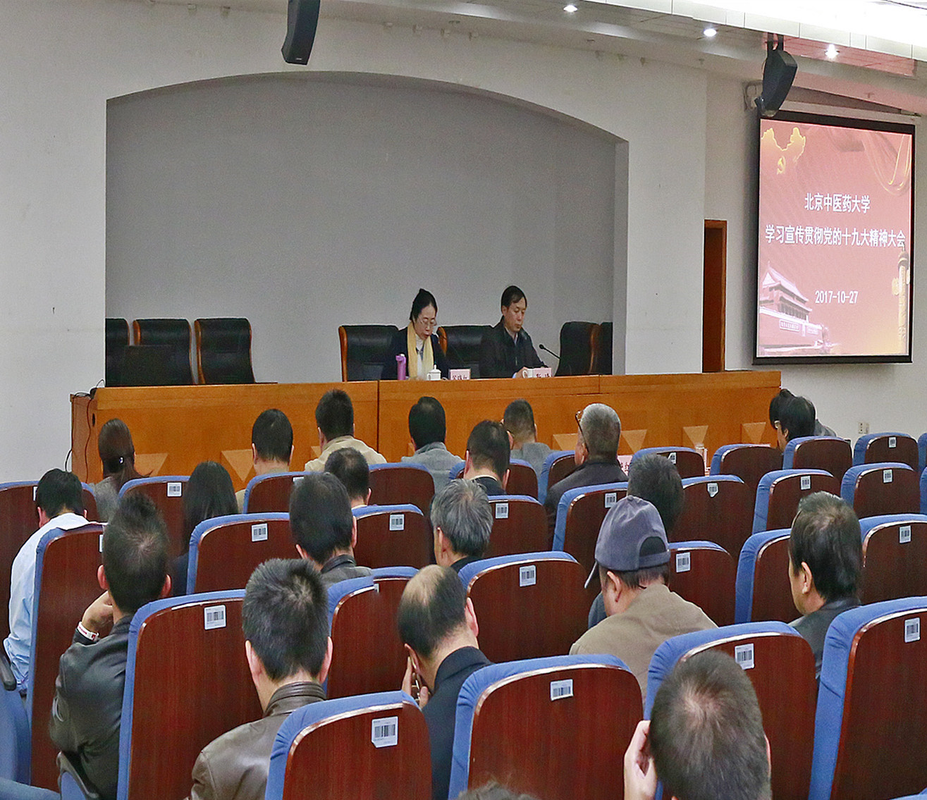 北京中醫藥大學設立分會場參加教育部直屬系統傳達學習黨的十九大精神大會10月26日下午,教育部直屬系統傳達學習黨的十九大精神大會在北京召開,會議主會場設在教育部機關禮堂,各直屬單位、直屬各高校設分會場,并以網絡視頻方式參會。會議傳達了黨的十九大精神,并對深入學習宣傳貫徹十九大精神進行動員部署。會議以網絡視頻會議形式召開,北京中醫藥大學在和平街校區設立分會場組織參加。262017-10