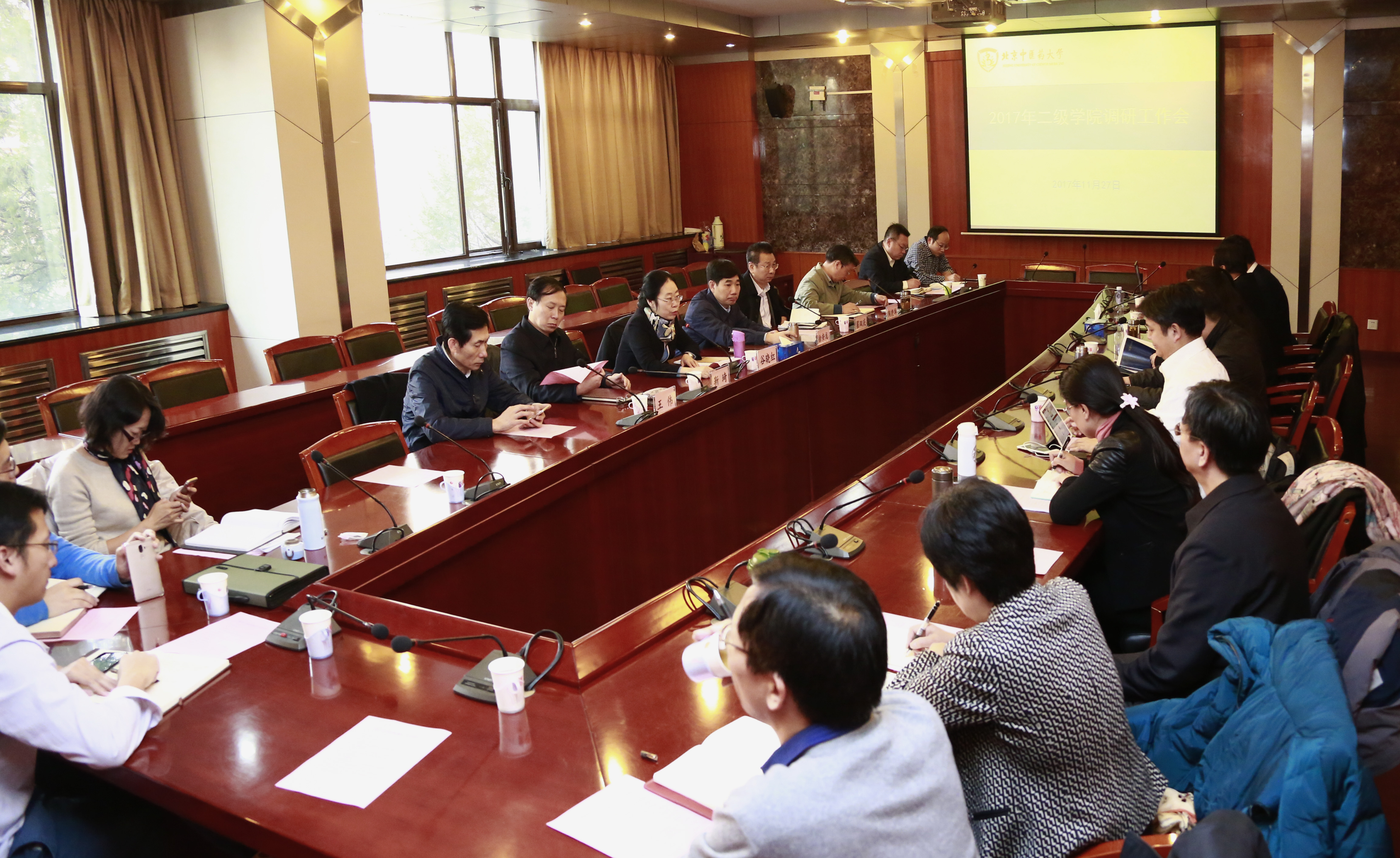 我校召開2017年二級學院調研工作會2017年11月27日至28日,我校2017年二級學院調研工作會在和平街校區博物館二層圓桌會議室召開。校領導谷曉紅、徐安龍、靳琦、翟雙慶、王偉、陶曉華,各二級學院黨政負責人、有關職能部門負責人參加了會議。會議由谷曉紅書記主持。302017-11
