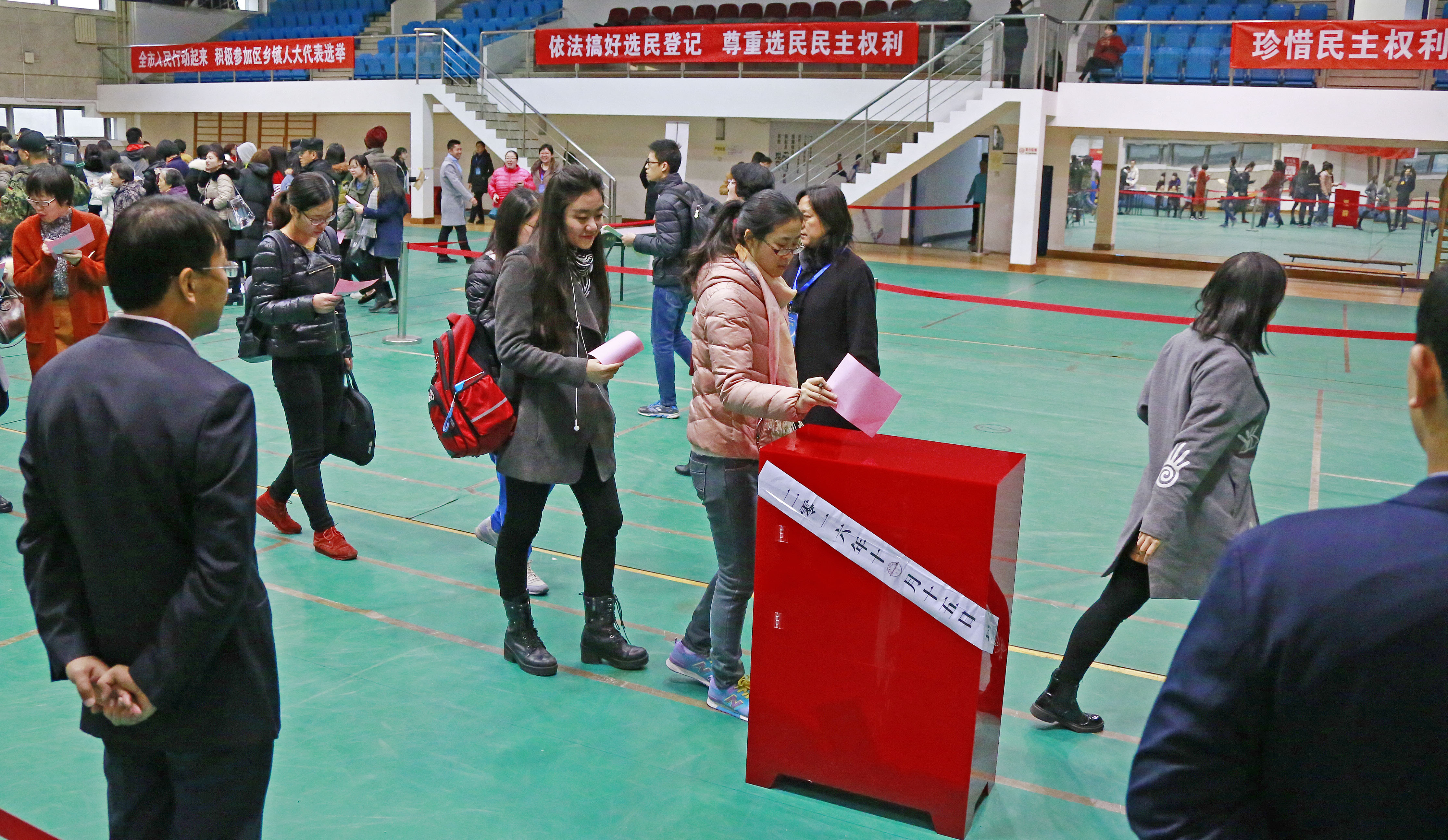 我校進(jìn)行朝陽區(qū)和平街地區(qū)區(qū)人大代表換屆投票選舉工作根據(jù)朝陽區(qū)選舉委員會統(tǒng)一安排,我校于11月15日進(jìn)行了北京市朝陽區(qū)選舉委員會和平街地區(qū)分會第34選區(qū)人大代表換屆投票選舉工作。全校師生選民分別在和平街校區(qū)、望京校區(qū)和良鄉(xiāng)校區(qū)三個投票站投下了自己莊嚴(yán)的一票。152016-11