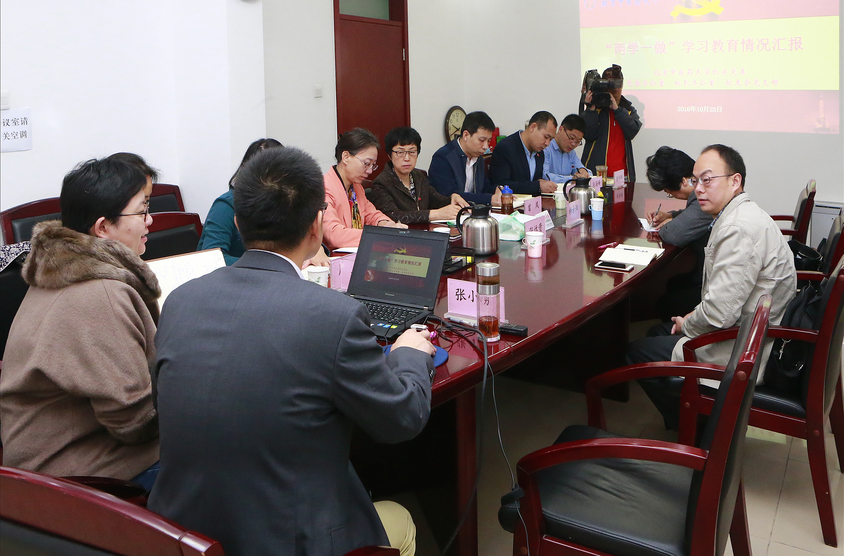 我校機(jī)關(guān)黨委黨校辦、校友會黨支部向北京市委教育工委作“兩學(xué)一做”學(xué)習(xí)教育情況匯報10月25日,我校機(jī)關(guān)黨委黨校辦、校友會黨支部向北京市委教育工委作“兩學(xué)一做”學(xué)習(xí)教育情況匯報。北京市委教育工委“兩學(xué)一做”督導(dǎo)組成員,清華大學(xué)原黨委副書記、紀(jì)委書記韓景陽同志,北京市委教育工委政策研究與法制工作處副調(diào)研員張遠(yuǎn)貴同志來我校聽取了匯報。我校黨委組織部部長曾鳳,機(jī)關(guān)黨委常務(wù)副書記歐陽方,黨校辦、校友會黨支部書記張小勇以及黨校辦、校友會黨支部的6名黨員代表參加了匯報會。252016-10
