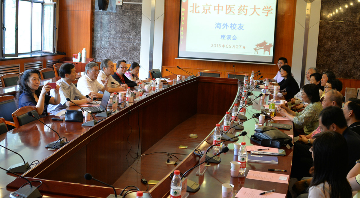 海外校友返校暢談中醫藥國際化戰略5月27日下午,在學校60周年校慶前夕,校友會率先迎來了來自英國、德國、西班牙、意大利、瑞士、瑞典、美國、日本、南非等9個國家的13位海外校友,與國際交流與合作處聯合舉辦了海外校友返校座談會。校黨委書記吳建偉、校黨委副書記靳琦、國際交流與合作處處長張立平、校友會副會長兼秘書長王明來、學校教育發展基金會、校友會副秘書長閆興麗及校友會工作人員參加了座談會。會議由王明來副會長主持。312016-05