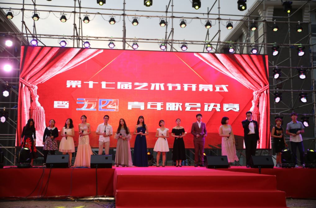 我校舉行第十七屆藝術節開幕式暨五四青年歌會決賽5月4日晚,我校第十七屆藝術節開幕式暨五四青年歌會決賽在良鄉校區舉行。我校黨委副書記、副校長翟雙慶,良鄉校區綜合辦公室主任孫傳新,學工部副部長佟曉輝,保衛處副處長李維峰,團委李天罡,以及校團委、學院團總支的老師們出席了本次活動,同時邀請到中國青年作曲家劉銳老師擔任專家評審,全場共800余名同學觀賞了本場歌會。062016-05
