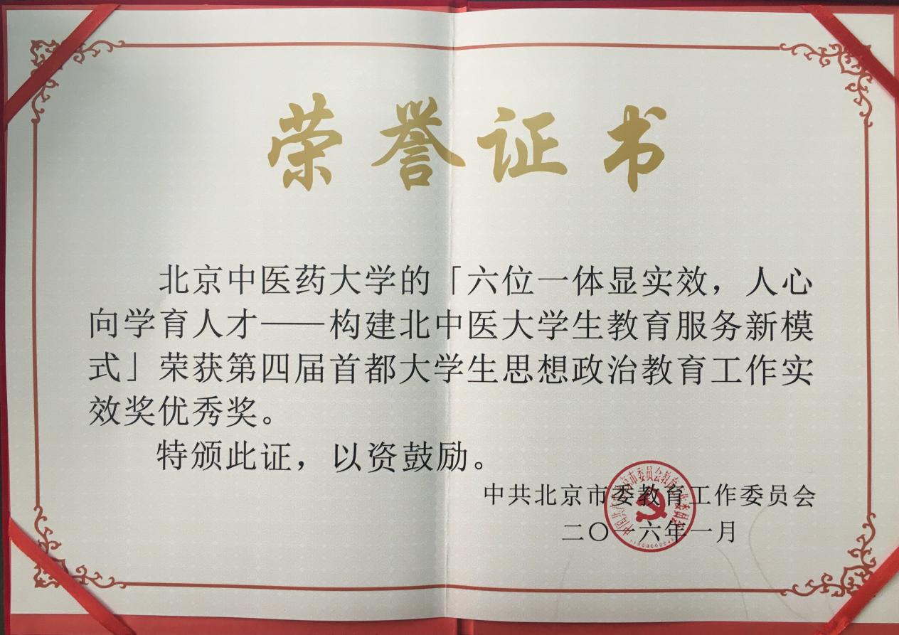 我校“六位一體”服務育人模式獲得北京市第四屆首都大學生思想政治教育工作實效獎優秀獎近日,在北京市教工委組織的2016年北京高校宣傳教育工作會上,我校六位一體服務育人模式獲得北京市教工委高度評價,并被授予第四屆首都大學生思想政治教育工作實效獎優秀獎。042016-03