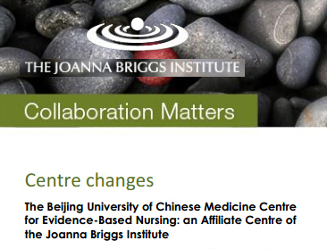 北京中醫藥大學JBI循證護理合作中心正式成立2015年6月,澳大利亞JBI循證衛生保健研究中心(Joanna Briggs Institutions,JBI)在其中心網站正式發布北京中醫藥大學成為澳大利亞JBI循證護理合作中心。北京中醫藥大學JBI循證護理合作中心是中國大陸第三家循證護理合作中心,也是全球第一家從事中醫護理的循證護理合作中心。122015-06