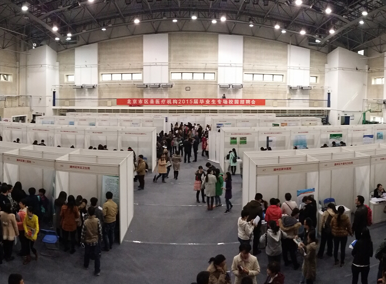 北京市衛生人才服務交流中心聯合我校舉行專場校園招聘會3月18日,北京市區縣醫療機構2015屆畢業生專場校園招聘會我校舉行。來自北京市各區縣的近百家基層醫療衛生機構入場參會,此次招聘會共提供了2000余個工作崗位,來自北京及周邊地區近20余所高校的3000余名畢業生表達了服務北京市區縣的意愿。招聘會期間,翟雙慶副校長到招聘會現場與用人單位進行了溝通,了解用人需求。各學院和相關部門負責人也分別到場了解學生應聘和用人單位的崗位設置情況。232015-03
