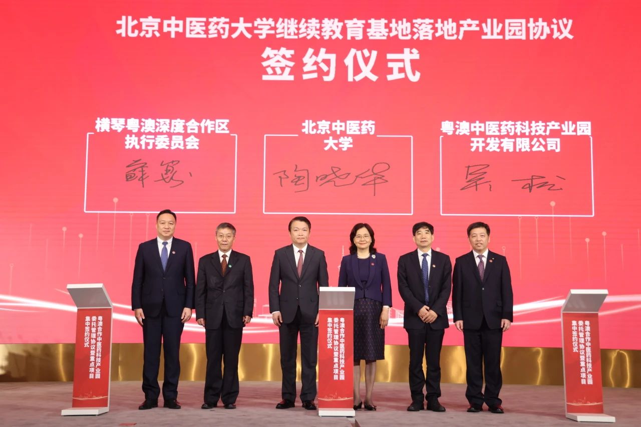 北京中醫藥大學在橫琴建立繼續教育基地!2月20日,橫琴粵澳深度合作區舉行粵澳中醫藥科技產業園重點項目集中簽約儀式。我校校長徐安龍、副校長陶曉華在現場見證北京中醫藥大學繼續教育基地簽約。232024-02