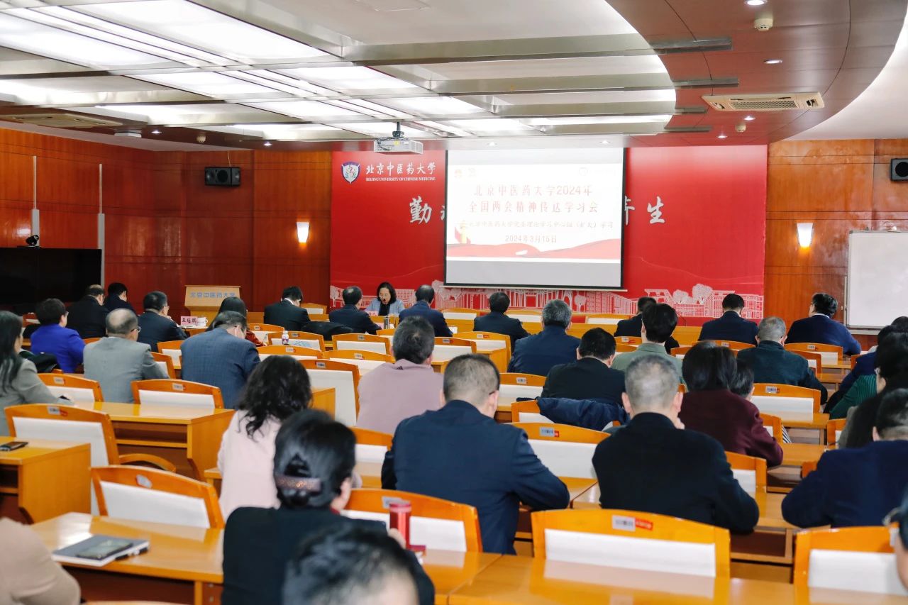 凝心聚力,振奮精神,為促進新質生產力發展作出北中醫貢獻!3月15日下午,我校在和平街校區召開2024年全國兩會精神傳達學習會。校領導、職能部門負責人、二級黨組織書記、學校民主黨派代表參加學習。此次學習也是學校黨委理論學習中心組的一次擴大學習。會議由校黨委書記王瑤琪主持,第十四屆全國政協委員、我校校長徐安龍,第十四屆全國政協委員、國學院教授張其成,第十四屆全國政協委員、東方醫院副院長張勉之分別結合各自參會經歷,傳達了2024年全國兩會精神。152024-03