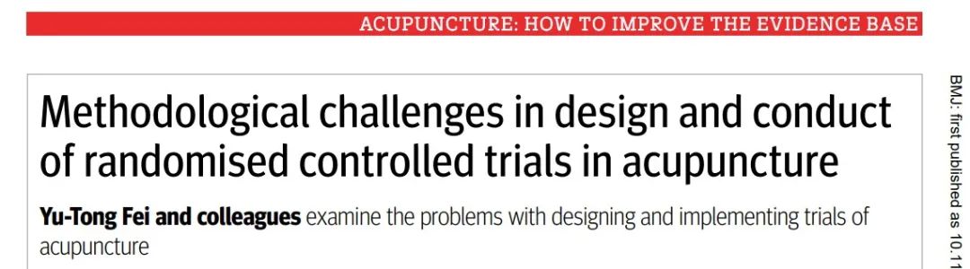 北京中醫(yī)藥大學(xué)循證醫(yī)學(xué)中心團隊在針灸臨床研究方法學(xué)和衛(wèi)生經(jīng)濟學(xué)領(lǐng)域取得重大進展,系列成果發(fā)表在國際醫(yī)學(xué)領(lǐng)域頂級期刊英國醫(yī)學(xué)雜志(BMJ,最新影響因子39.89分)上。兩篇文章是名為“針灸:如何促進證據(jù)基礎(chǔ)”(Acupuncture: How to Improve the Evidence Base)五篇系列文章中的兩篇(https://www.bmj.com/acupuncture)。