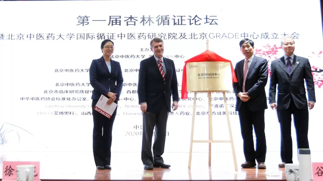 1月12日,北京中醫(yī)藥大學(xué)國(guó)際循證中醫(yī)藥研究院、北京GRADE中心成立暨揭牌儀式在我校舉行。循證醫(yī)學(xué)創(chuàng)始人、GRADE創(chuàng)始人、GRADE指導(dǎo)委員會(huì)主席、加拿大麥克馬斯特大學(xué)Gordon Guyatt院士,北京中醫(yī)藥大學(xué)黨委書(shū)記谷曉紅,校長(zhǎng)徐安龍為研究院和中心揭牌。眾多國(guó)內(nèi)循證醫(yī)學(xué)領(lǐng)域知名專家,以及我校相關(guān)部門和學(xué)院負(fù)責(zé)人等出席了開(kāi)幕式。開(kāi)幕式由我校副校長(zhǎng)陶曉華主持。