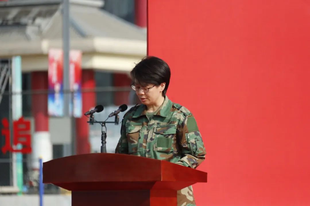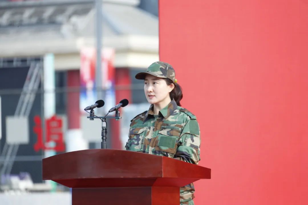 中醫學院專職輔導員韓雪老師作為軍訓團指導員代表發言。她希望同學們能充分認識并理解軍訓的重要意義和價值,從中汲取力量,謹記“勤求博采、厚德濟生”的校訓,弘揚“自信向上、和而不同”的校風,成為有擔當有責任感的新北中醫人!