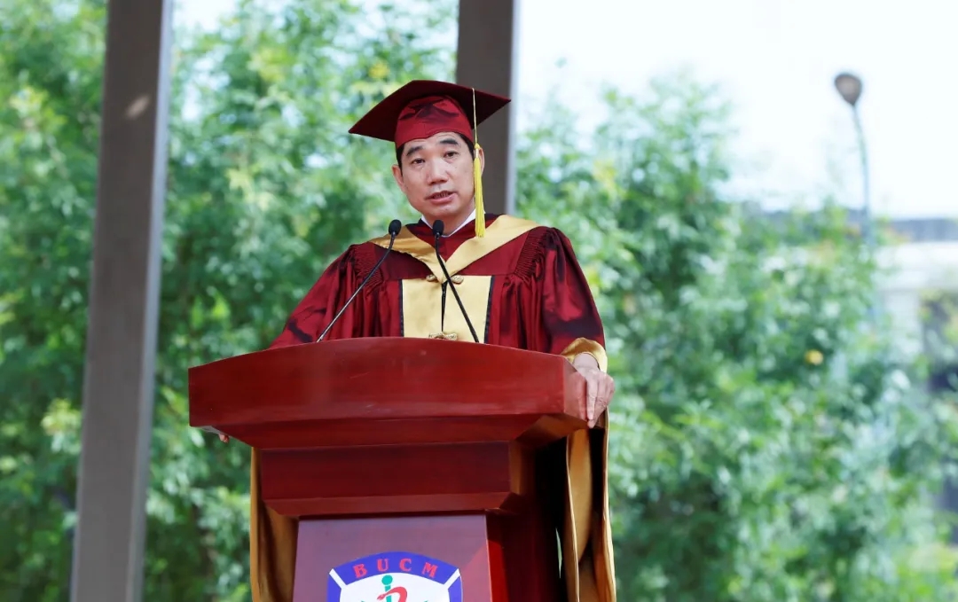 谷書記說,辦學64年來,第一次云畢業、第一次在大美良鄉校區舉辦畢業典禮,第一次面向全球直播,讓全世界見證同學們畢業的盛況!這些都將化成永恒的記憶。疫情中的畢業與眾不同,失去了許多,但也收獲了更多,更加敬畏自然、更加尊重生命、更加珍惜健康、更加敬重職責、更加忠誠事業!北中醫人始終堅守著“為黨育人、為國育才”的初心和使命,實踐著“勤求博采、厚德濟生,追求卓越、止于至善”的精神,踐行著“若有戰、召必至、戰必勝”的承諾,當祖國人民需要時,沖鋒在前,體驗著“醫者仁心、大醫精誠”崇高追求的暢快!感受著“傳承精華、守正創新”的責任與擔當!