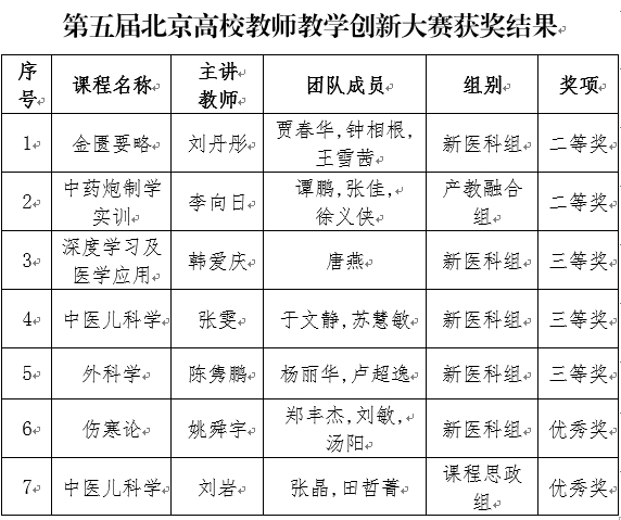 近日,北京市教育委員會發布了《關于公布第五屆北京高校教師教學創新大賽獲獎名單的通知》,我校推薦參賽的7支參賽團隊全部斬獲獎項,獲獎數量為歷年之最。