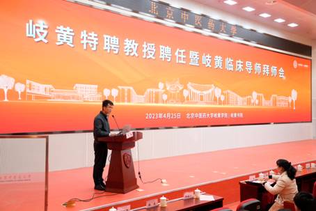 4月25日下午,2023年度岐黃特聘教授聘任暨岐黃臨床導師拜師會在我校良鄉校區(西院)綜合樓一層報告廳舉行。校黨委書記王瑤琪,校長、岐黃學院院長徐安龍,副校長、岐黃學院常務副院長翟雙慶,岐黃學院執行院長姚樹坤,以及學校相關職能部門、二級學院、附屬醫院領導,岐黃特聘教授、岐黃臨床導師,2021-2022級九年制中醫學專業(領軍人才培養計劃)、中西醫臨床醫學專業(華佗班)的同學們共同參會。會議由翟雙慶副校長主持。
