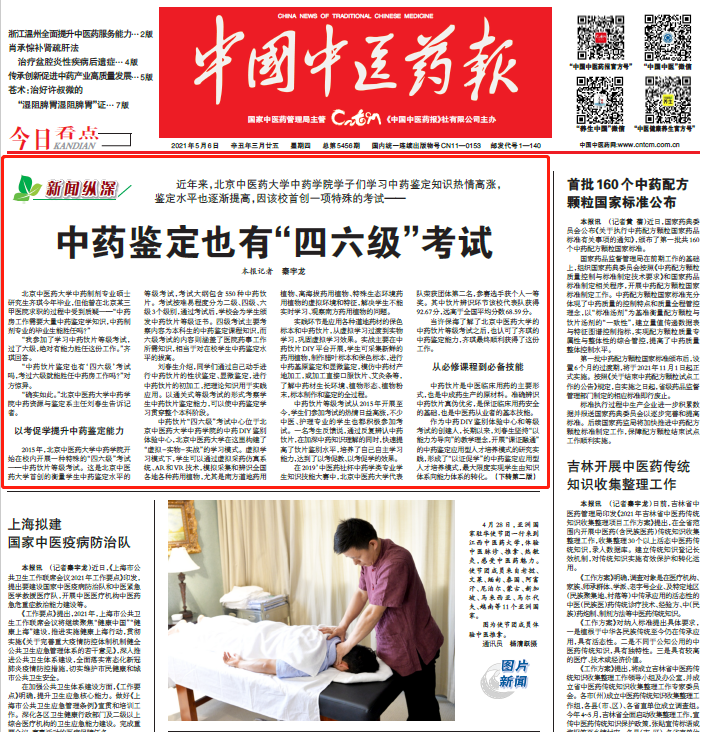 中藥飲片是中醫臨床用藥的主要形式,也是中成藥生產的原材料。準確辨識中藥飲片真偽優劣,是保證臨床用藥安全的基礎,也是中醫藥從業者的基本技能。為了提高同學們的中藥鑒定能力,我校首創了衡量中藥鑒定水平的等級考試。5月6日,《中國中醫藥報》頭版頭條對這一創新舉措進行報道。全文如下: