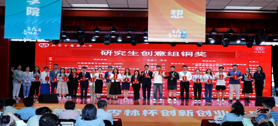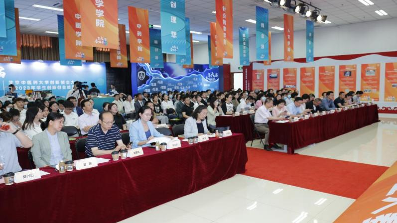5月18日,北京中醫藥大學第六屆“杏林杯”創新創業大賽決賽和2023年大學生創新創業成果展在良鄉校區舉行。校黨委書記王瑤琪,副校長翟雙慶,北京岐黃中醫藥文化發展基金會董事長楊繼、紅日藥業總裁助理馬魯峰等校外嘉賓、評委專家代表、媒體記者,大學生創新創業教育中心組成單位、相關職能部門、各學院相關負責同志和創新創業秘書、指導老師代表、參賽學生等參加頒獎典禮。