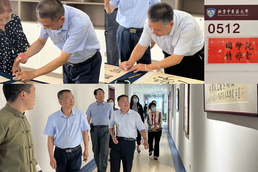 9月28日,我校舉行了北京中醫藥大學美育中心揭牌儀式,一同揭牌的還有國學院豎幅牌匾。學校美育中心的豎幅牌匾由中國書法家協會副主席、北京書協主席葉培貴教授題寫,國學院豎幅牌匾由北京大學樓宇烈先生題寫。我校副校長翟雙慶、黨委副書記張繼旺、教務處處長閆永紅、學工部副部長趙娜以及國學院支委班子和師生代表一同參加揭牌儀式。