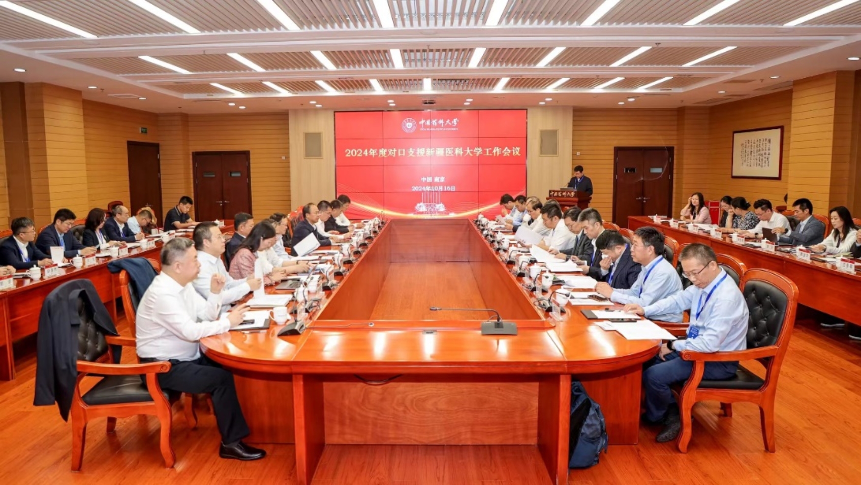 10月16日,2024年度對口支援新疆醫科大學工作會議在南京召開,新疆維吾爾自治區教育廳、新疆醫科大學和來自中南大學、吉林大學、北京中醫藥大學、溫州醫科大學、中國藥科大學及部分友好協作高校和附屬醫院領導出席會議。與會的各對口支援高校負責人分享了對口支援新疆醫科大學的豐碩成果與寶貴經驗,我校黨委副書記張繼旺代表學校參會,并總結了過去一年北京中醫藥大學援建新疆醫科大學的工作舉措和成效。