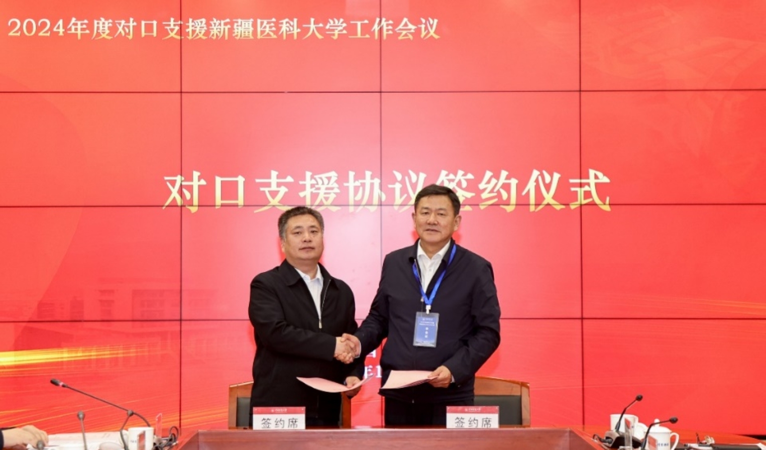 會議期間,新疆醫科大學分別與對口援建高校簽署了對口支援協議。