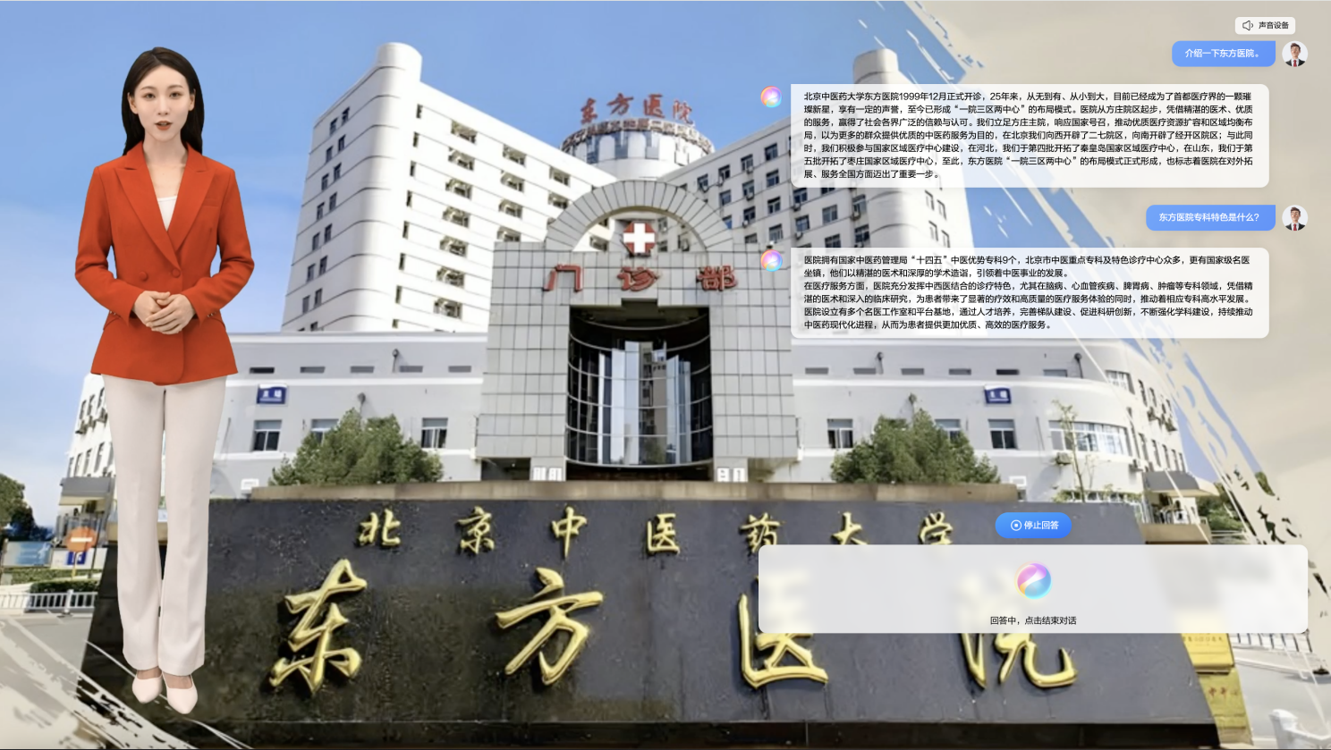 近日,北京中醫(yī)藥大學(xué)東方醫(yī)院成功嘗試了DeepSeek +數(shù)字人本地化部署。這一創(chuàng)新舉措有望為醫(yī)院的文化展示和醫(yī)療服務(wù)注入全新元素,同時(shí)也可能為中醫(yī)智慧傳播開辟新的途徑。東方醫(yī)院數(shù)字博物館建設(shè),不僅是對(duì)醫(yī)院歷史與文化的數(shù)字化呈現(xiàn),更是醫(yī)院站在新的歷史起點(diǎn)上,對(duì)文化傳承與創(chuàng)新的堅(jiān)定承諾。全新技術(shù)的引入,達(dá)到了提升東方醫(yī)院文化的展示效果、增強(qiáng)互動(dòng)體驗(yàn)的預(yù)期目標(biāo),為觀者帶來(lái)全新的沉浸式感受。