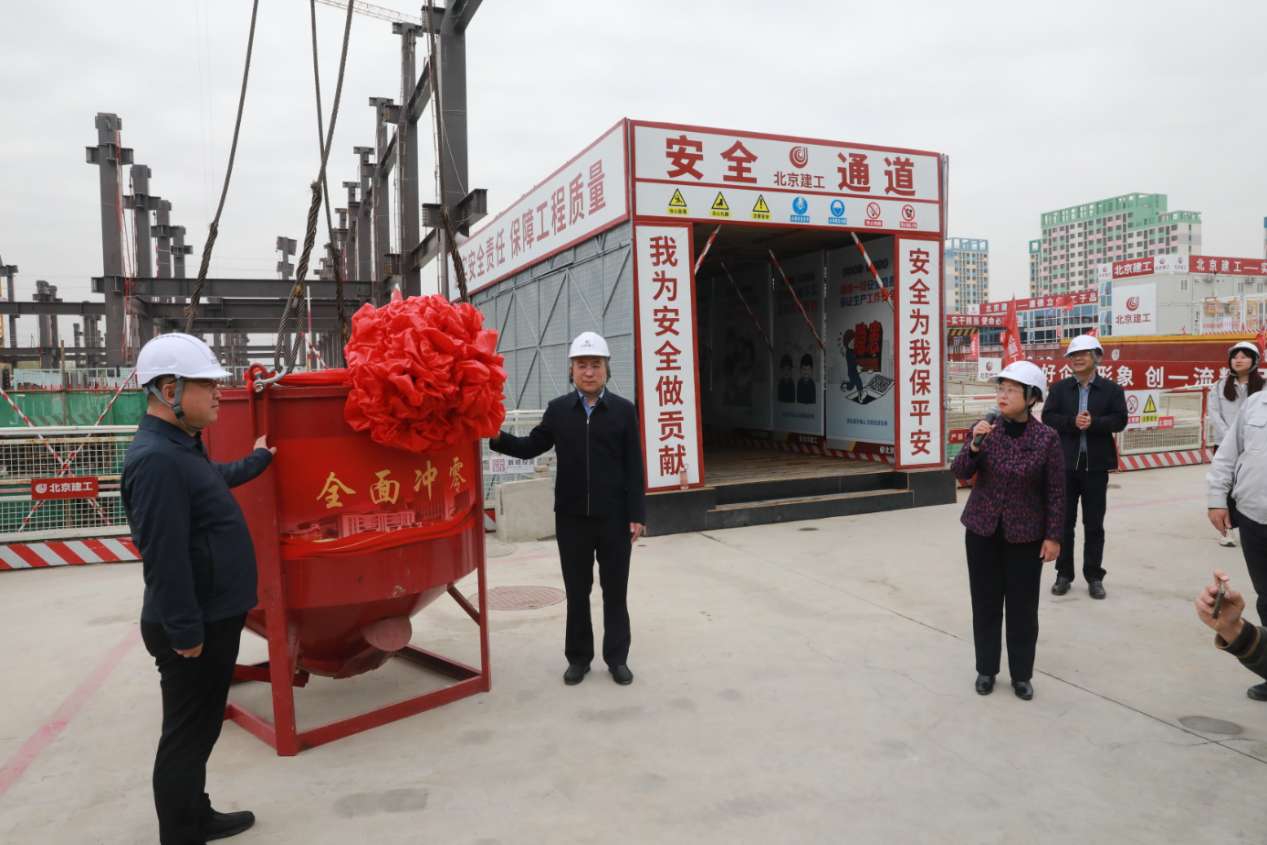 4月8日,房山區中醫醫院新院區建設項目通過科學統籌、周密組織、搶抓工期,地下結構全面“沖”出正負零,標志著該工程建設全面進入地上結構施工新階段。北京中醫藥大學房山醫院黨委書記郭書文、院長孫魯英、副院長楊景柳、北京六建集團有限責任公司黨委書記、董事長曹常海、北京市房山新城投資有限公司副總經理劉寧、北京華城工程管理咨詢有限公司總經理郝蘭濤等參加活動,共同見證這一重要時刻。