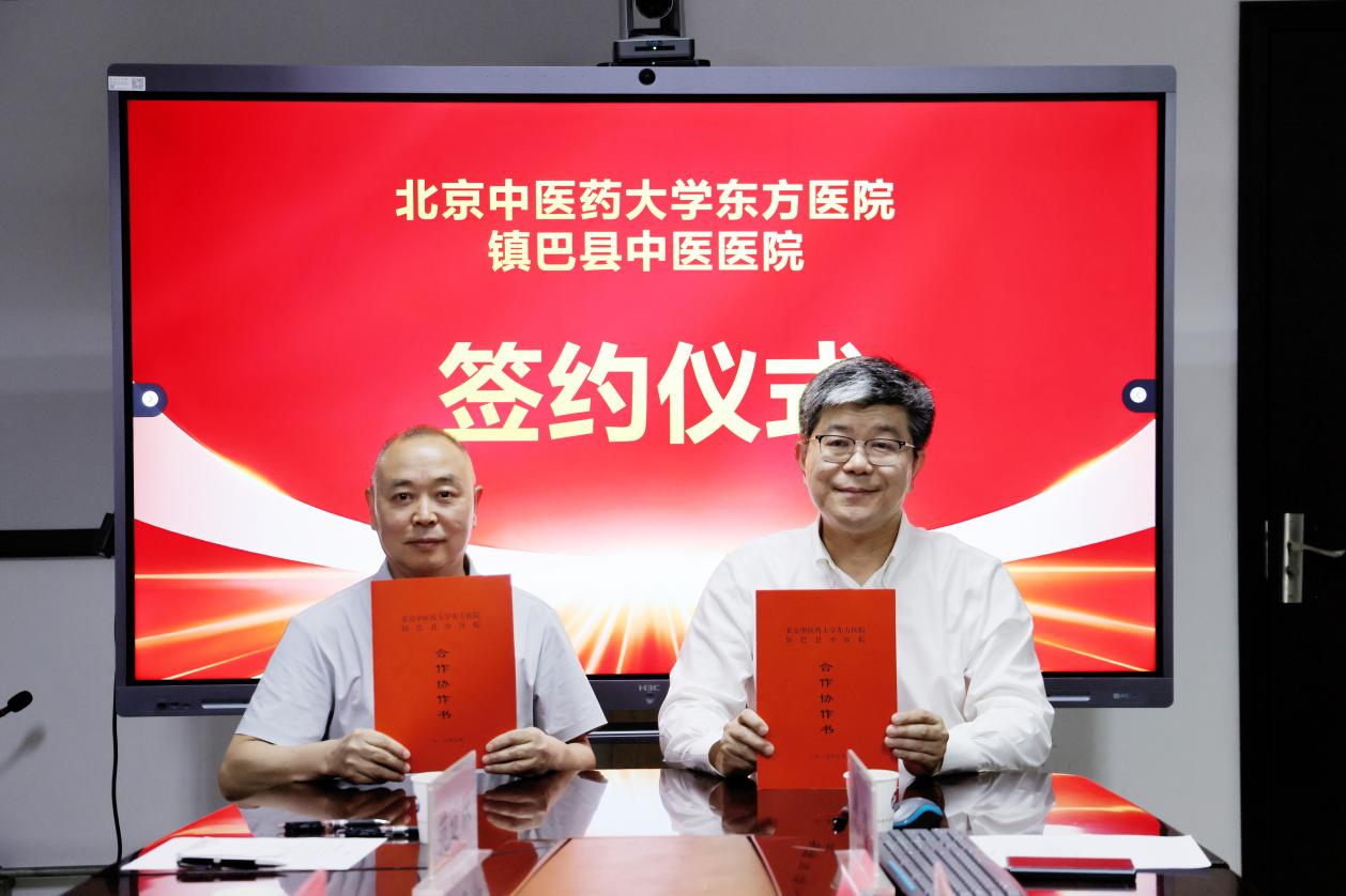 為深入貫徹落實國家中醫藥發展戰略,推動中醫藥傳承創新,提升區域醫療服務能力,北京中醫藥大學東方醫院與陜西省漢中市鎮巴縣中醫醫院于5月8日簽訂合作協議。陜西省漢中市鎮巴縣人民政府副縣長張文春,鎮巴縣衛健局黨組書記、局長劉文斌,鎮巴縣中醫院黨委書記楊忠,鎮巴縣中醫院副院長范近林,北京中醫藥大學東方醫院黨委副書記、院長商洪才,副院長王樂,拓展部處長沈潛參加會議。