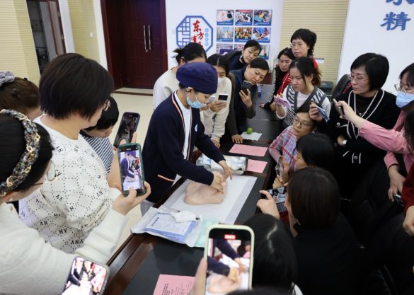 《手法通乳中醫技術操作規范》團體標準技術培訓由北京中醫藥大學東方醫院外二乳腺科護士長陳宏進行理論培訓,外二乳腺科賈瑞晶、范東盼、李亞靜三位老師進行實操培訓,培訓結束后進行了實操考評。技術培訓環節由北京中醫藥大學東方醫院腎病科護士長鄧建華主持。