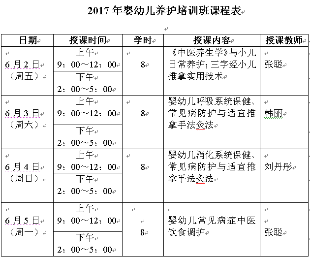 本期課程主要結合0-8歲嬰幼兒的生理特點,對其日常營養、護理、智力開發等方面進行科學專業的指導;并對小兒腹瀉、感冒、食積、驚風、夜啼等常見疾病,進行中醫診斷、家庭護理常識和中醫飲食調護方面的講解和實踐操作指導。學習期滿,經考核合格者,頒發北京中醫藥大學的結業證書。