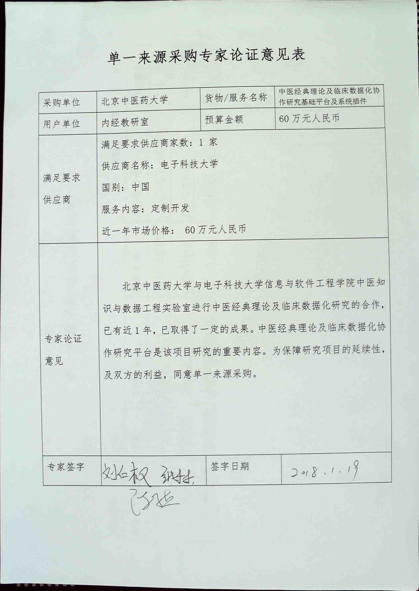 北京中醫(yī)藥大學(xué) 中醫(yī)學(xué)院中醫(yī)經(jīng)典理論及臨床數(shù)據(jù)化協(xié)作研究基礎(chǔ)平臺及系統(tǒng)插件 采購項(xiàng)目采用單一來源方式采購,該項(xiàng)目擬由 電子科技大學(xué) , 成都市高新區(qū)(西區(qū))西源大道2006號 提供(或承擔(dān))。現(xiàn)將有關(guān)情況向潛在采購供應(yīng)商征求意見。征求意見期限從2018年4月23日至 2018年4月27日止。