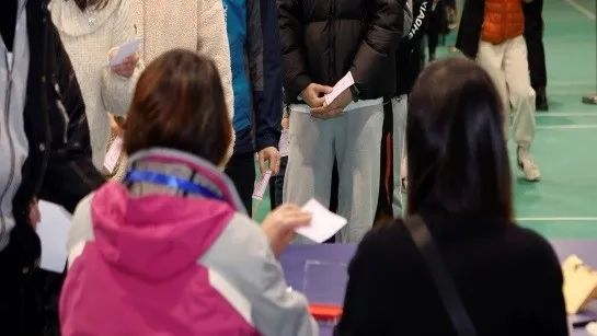 為確保防疫、投票“兩不誤”,投票現場消毒用品一應俱全,并將排隊方向做了醒目標記。師生選民在進入投票點前需測溫并按照一米間隔排隊等候,按照分流路徑進入投票點。