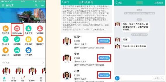 第一步,首頁中,點擊“新肺炎咨詢”,進入咨詢醫生列表。