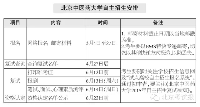 記者:2015年,北京中醫藥大學自主招生政策較往年有哪些調整?