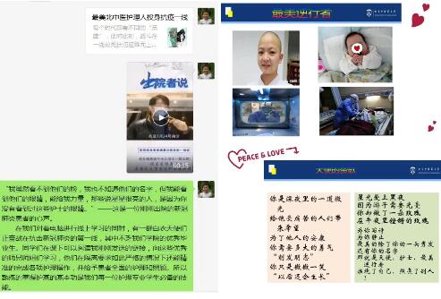 在《生物化學》的課堂上,當班長說到“全體起立,升國旗奏國歌”時、當同學們在微信群里一起誦讀《大醫精誠》時,授課老師真切地感到學生們心中有祖國、肩上有擔當,這是堅定愛國、擔起責任、撐起未來的一代。線上教學模式,對教師和學生都是挑戰。雖然背后有汗水,但臉上有笑容,當授課老師在微信群里說“這種模式對大家都是第一次,但是我們現在的堅持就是對祖國最大的貢獻”時,同學們紛紛在微信群留言,大家都更加堅定地認識到,不論身處何方我們都和祖國在一起。