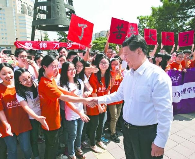 在同北師大師生代表座談時的講話,習近平說,見到你們,我就回想起自己的學生時代。教過我的老師很多,至今我都能記得他們的樣子,他們教給我知識、教給我做人的道理,讓我受益無窮。學生時代是人一生最美好的時光,長身體、長知識、長才干,每天都有新收獲,每天都有新期待。我希望在座的同學們,也希望全國2.6億在校學生,珍惜學習時光,多學知識,多學道理,多學本領,熱愛勞動,身心健康,茁壯成長。