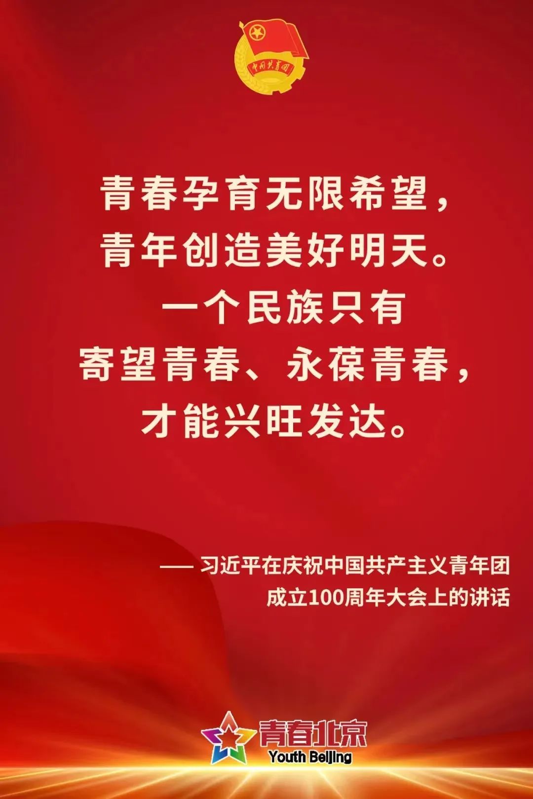 在這青春澎湃的五月,中國共青團迎來她百歲生日。100年櫛風沐雨,中國共青團始終堅定不移跟黨走,團結帶領共青團員和廣大青年,前赴后繼,奮楫爭先,鑄造了中國青年運動的百年榮光。