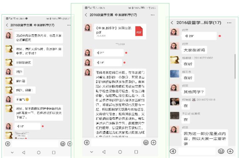 中西醫結合外科學系全體教師在接到任務后立即行動起來,集體討論教學方式,并分享各類在線教學平臺和軟件的使用經驗。教師們在線認真討論了直播教學的每個步驟、可能遇到的問題,以及解決方法。在開課前3天,學系將講課課件、預習材料傳給學生,讓學生充分預習,為正式開展線上教學作好充足的準備。中西醫結合外科學系主任親自講授《西醫外科學》的第一次課,學系副主任及委員均在線觀摩。通過微信群與同學們進行線上授課和交流,以課件為基礎,采用講授式與案例式結合的教學方法,深入淺出。在互動中,學生與教師熱烈互動,情緒高漲,并紛紛表示通過線上授課,受益匪淺。