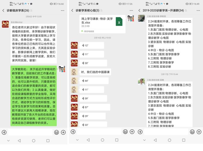 第六臨床醫學院高度重視本科教學工作,面對突如其來的疫情,由院領導帶領科教科立即組織教研室落實大學會議精神,快速啟動線上授課籌備,征集授課方法、授課形式,正式開啟《中西醫臨床醫學概論》線上授課準備。醫院專門組織了理論授課試講和集體備課,與相關教研室、授課教師討論授課過程中可能存在的問題及解決方案,論證開課方案的可行性。本次授課綜合考慮學生的實際情況,采用在線課程資源、微信群精講和大學BB平臺結合的形式進行,學生反響良好,上課氣氛融洽,積極參與討論提問環節。