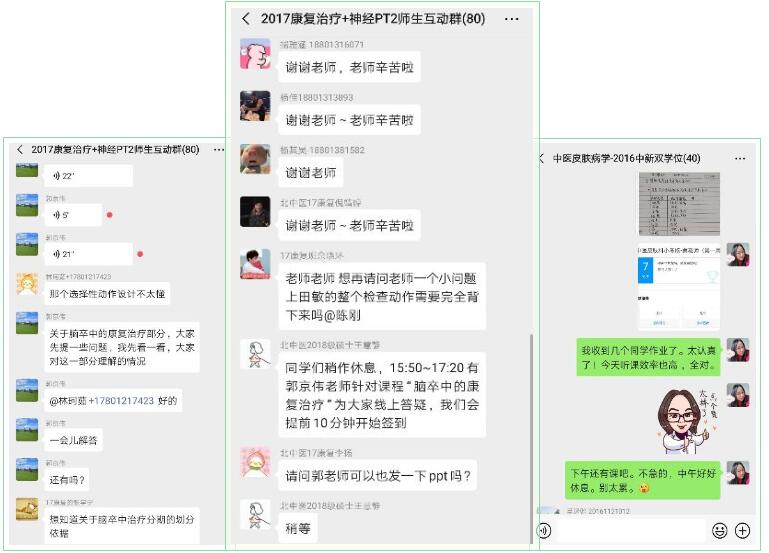 廣安門臨床醫學院西醫內科學、中醫兒科學、中醫婦科學和西醫外科學四個教研室積極準備,通過網絡直播課的新形式為針灸推拿學院2016級卓越針推班同學們進行“傳道授業”。各教研室主任與課程組長在群里不時協助解答同學們提出的相關問題,師生們在課程群里互動熱烈,高質量完成了“開學第一課”。中醫兒科學課程教研室創新教學形式,采用抖音短視頻平臺形式線上直播課程,同學們反饋積極,表示跟課堂授課一樣生動。