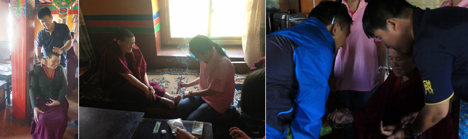 26日下午,實(shí)踐團(tuán)一行來到奪底溝鄉(xiāng)開展義務(wù)醫(yī)療服務(wù)活動(dòng)。奪底鄉(xiāng)位于拉薩市郊依果依拉山腳,是著名的藏藥產(chǎn)地,雖然當(dāng)?shù)卮迕衿饺站ㄟ^藏醫(yī)進(jìn)行治療,但對于中醫(yī)的認(rèn)同度卻很高,義務(wù)醫(yī)療服務(wù)活動(dòng)中,西藏藏醫(yī)學(xué)院研究生處老師親自擔(dān)任翻譯,活動(dòng)一直持續(xù)近四個(gè)小時(shí),得到了當(dāng)?shù)夭孛竦臒崃覛g迎,藏民們沏上甜美的酥油茶表示感謝。
