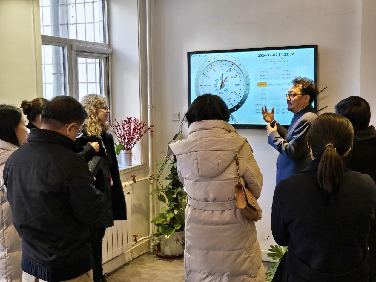 在中醫(yī)藥體驗(yàn)館,我校國(guó)際教育學(xué)院(國(guó)家中醫(yī)國(guó)際傳播中心)副主任王珊珊對(duì)嘉賓的到來(lái)表示熱烈歡迎。王樂(lè)鵬副教授向嘉賓介紹時(shí)間醫(yī)學(xué)鐘,以“天人相應(yīng)”為核心,揭示時(shí)間與人體健康之間的深層聯(lián)系,帶領(lǐng)嘉賓們走入中醫(yī)藥的世界。