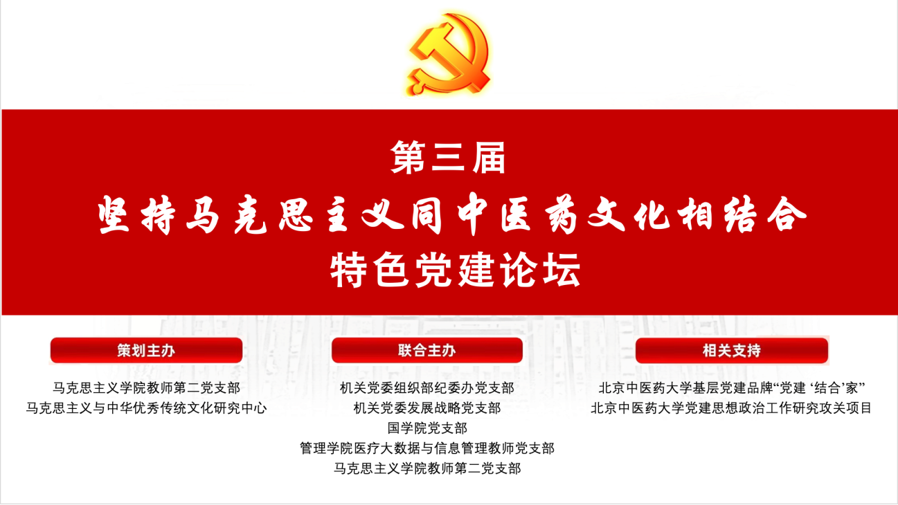 習近平總書記5月11日對推進新時代學校思政課建設作出最新重要指示,指出:“要始終堅持馬克思主義指導地位,以中國特色社會主義取得的舉世矚目成就為內容支撐,以中華優秀傳統文化、革命文化和社會主義先進文化為力量根基”。本次論壇是踐行“第二個結合”的具體體現,特別是將馬克思主義同中醫藥文化相結合,發揮高等中醫藥院校的特色,為研究和黨建工作相融合提供了有力支持。此次活動也是深化落實學校黨委組織部“一支部一特色”工作要求,為推動“教育強國,北中醫何為”的時代課題具有積極意義。